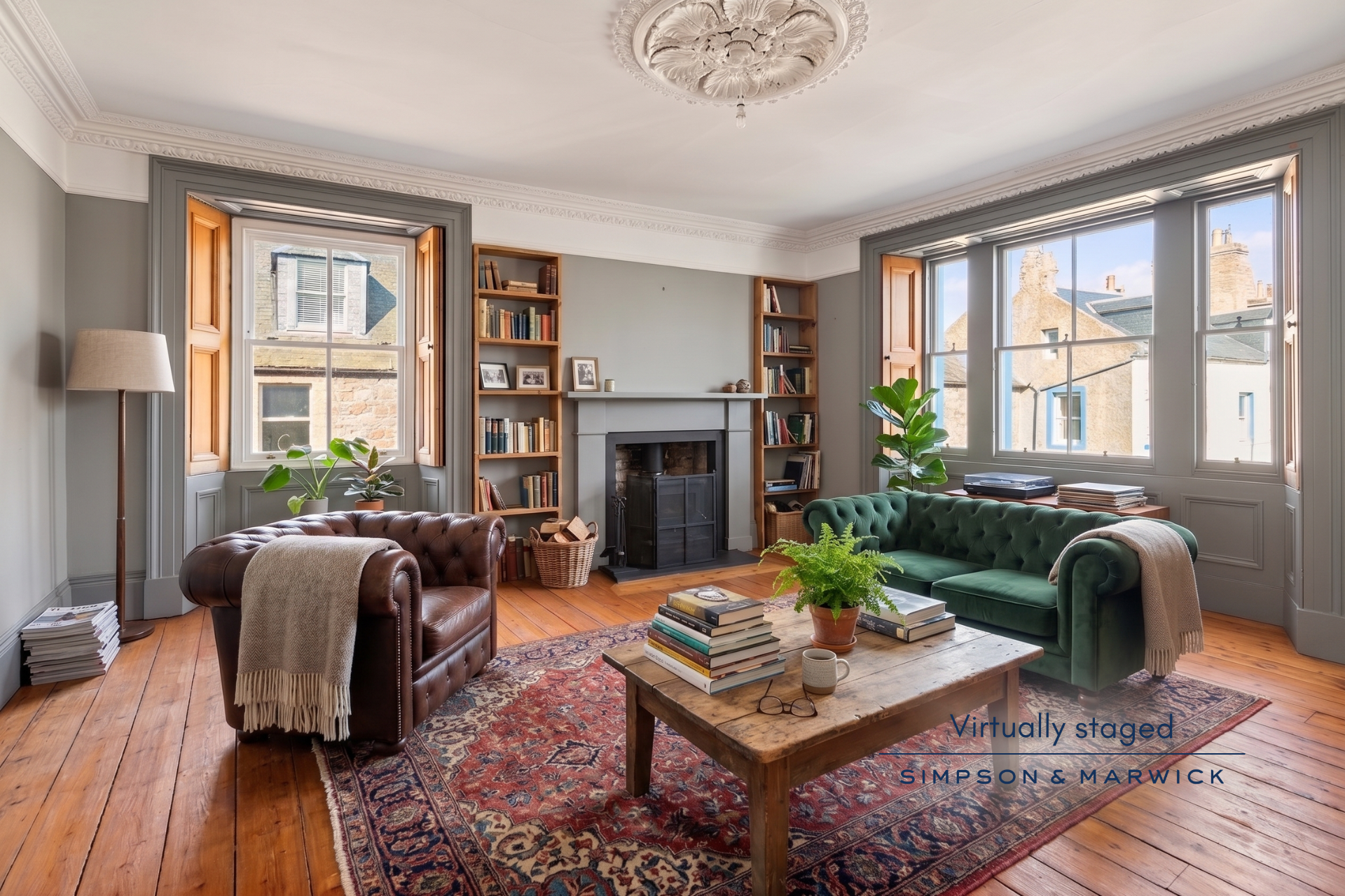 • Impressive double aspect sitting/dining room with wood-burning stove